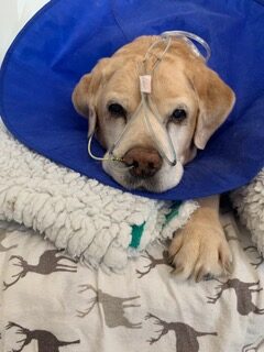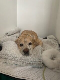 Beloved 14-year-old Labrador Retriever Oscar was rushed to us at Anderson Moores as an emergency admission, as he needed to be resuscitated before spending eight days in intensive care as he became critically ill with pneumonia and septic shock.